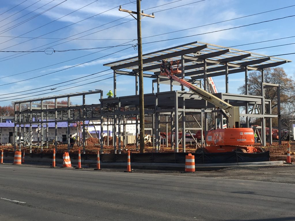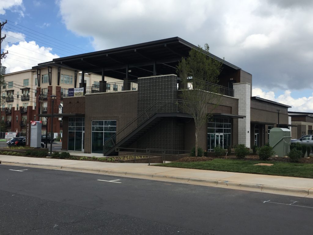 Located in Charlotte, North Carolina. New 12,500. sqft restaurant and retail shops. Steel framed with exterior 2nd level dining.